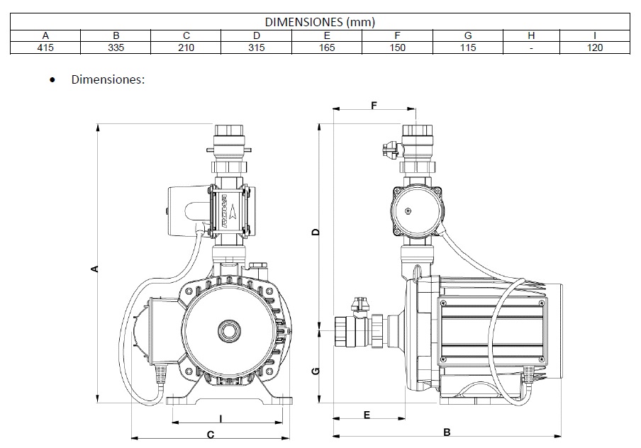 • Pérdida de carga máxima en succión: 5,7 PSI (4 m.c.a.)