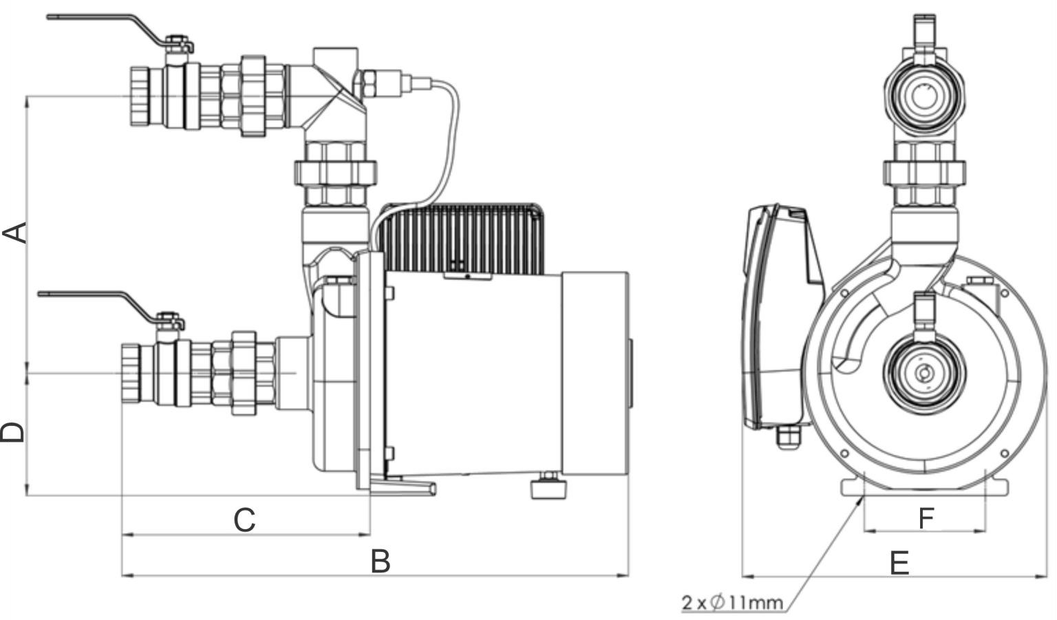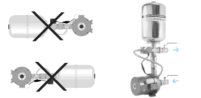 El presurizador deberá ser instalado obligatoriamente de modo que el eje de la electrobomba permanezca en posición horizontal, de acuerdo a las siguientes figuras. El no cumplimiento de esta norma implicará el desgaste irregular del equipo y la consecuente pérdida de la garantía.