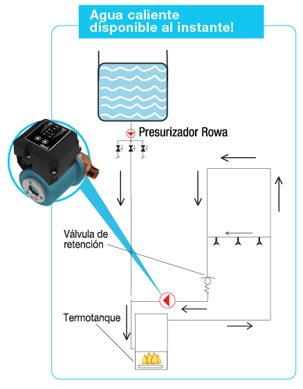 Solución para circuito domiciliario de recirculación de agua caliente.